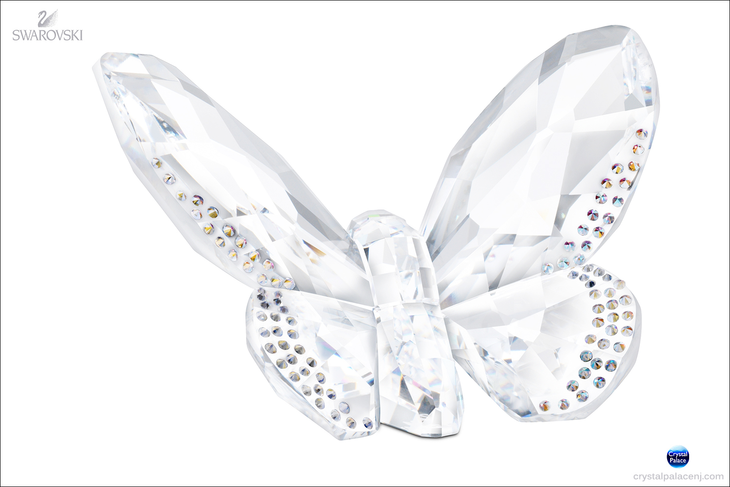 Bring spring into your house all year round with this masterpiece of the butterfly family. This magnificently crafted, fully faceted butterfly in clear crystal reflects the light beautifully. The very special crystal application technique creates a subtle glitter at the edges of the wings. Mix and match this unique piece with the coloured butterflies for an even more stunning effect. Item# 1043026 - Size: 2 11/16 x 1 11/16 inches. |