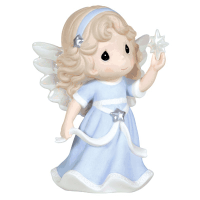 First in a new series of holiday angels, this ethereal beauty holds a star of wonder as she shares her message of hope. Opalescent wings and other accents will find you gazing in awe. What an uplifting gift for anyone in need of inspiration. Bisque porcelain figurine.