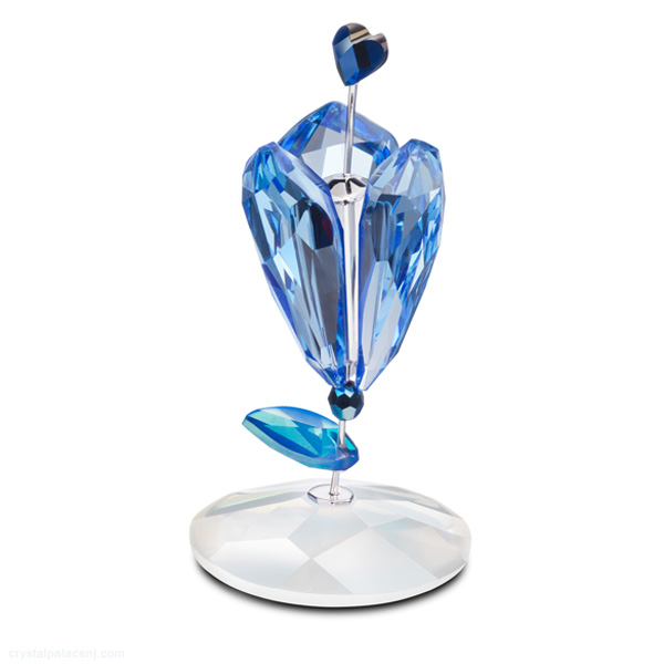 Juliette captures the beauty of nature with a playful touch. Her petals sparkle in Light Sapphire crystal. A leaf in White Opal Blue crystal shimmers on the silver-tone metal stem decorated with a crystal bead in Jet Metallic Blue. A heart-shaped pistil in Jet Metallic Blue adds a special touch and makes this the perfect romantic gift. This elegant creation stands on a White Opal rocking base and perfectly complements the other small Rocking Flowers.