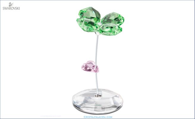 Liv stands for luck as she has been modelled after a four leaf clover. Show friends your love for them with this lucky charm. Its petals are created in faceted Peridot crystal and its centre flaunts small White Alabaster crystal chaton. A heart-shaped leaf in faceted Rosaline crystal comes on the silver-tone metal stem. Special detail: the faceted spherical base in Moonlight crystal enables rocking movement.