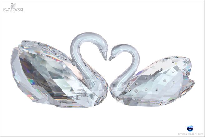 | Symbolizing love, affection, and togetherness, this pair of swans makes an ideal gift for a wedding or any other romantic occasion. When facing each other, their necks create an elegant heart shape. Both shine serenely in Crystal Moonlight with silver-tone metal beaks, and the female’s tail is decorated with clear crystals. Item# 1143414 - Size: 3 x 2 1/4 + 2 11/16 x 1 1/2 i inches |