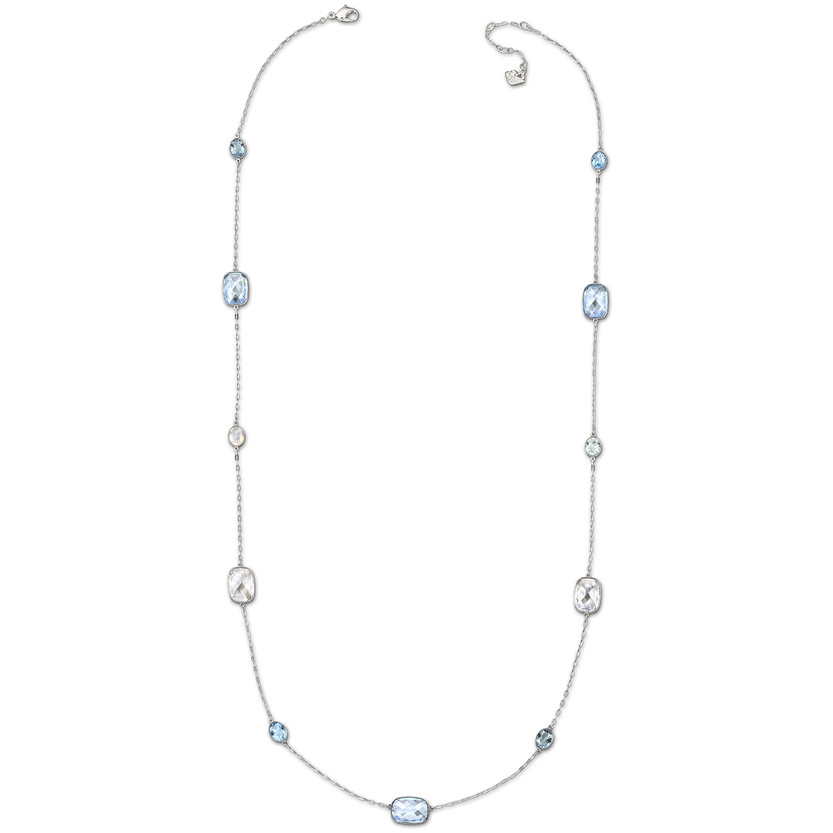 Delicate and light, this rhodium-plated necklace lends a refreshing splash of color to any outfit. It sparkles in a bright, fresh gradation of crystal colors, from blue to clear crystal. Add the matching bracelet or earrings to create a feminine ensemble.