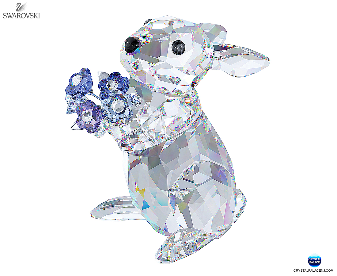 This cute creation makes an ideal gift for Mother’s Day, Easter, or any other occasion! Crafted in clear crystal, the rabbit holds a bunch of forget-me-nots in Sapphire and Light Sapphire crystal with silver-tone metal stems. An Aurora Boreale crystal chaton sparkles at the center of each flower.